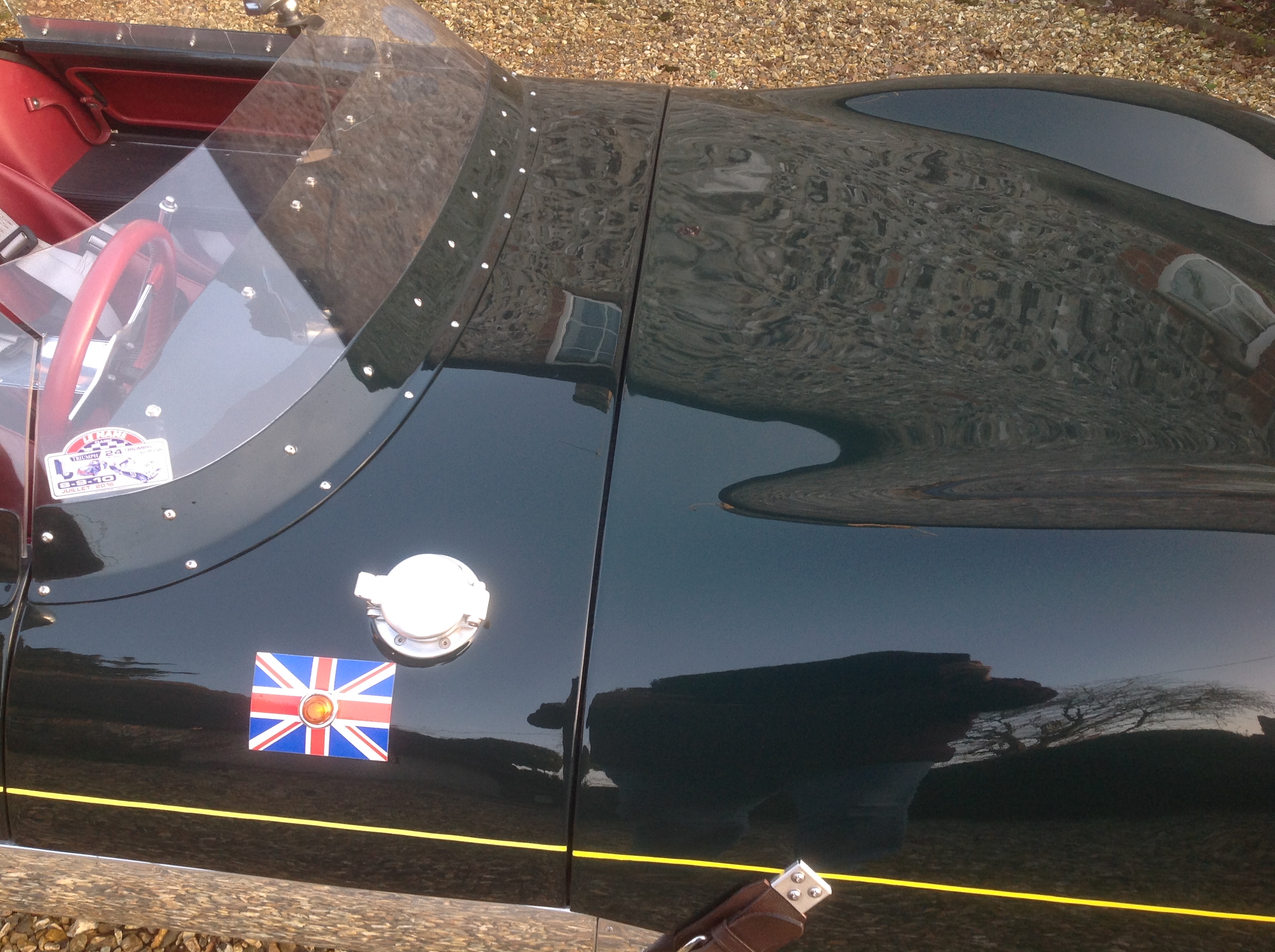 One or two things still to do. I'm waiting for the glass of my vintage, wide-angle rear-view mirror to be returned from resilvering and then the centre, bullet mirror will probably go. I may reuse it as a nearside mirror, matching the offside.