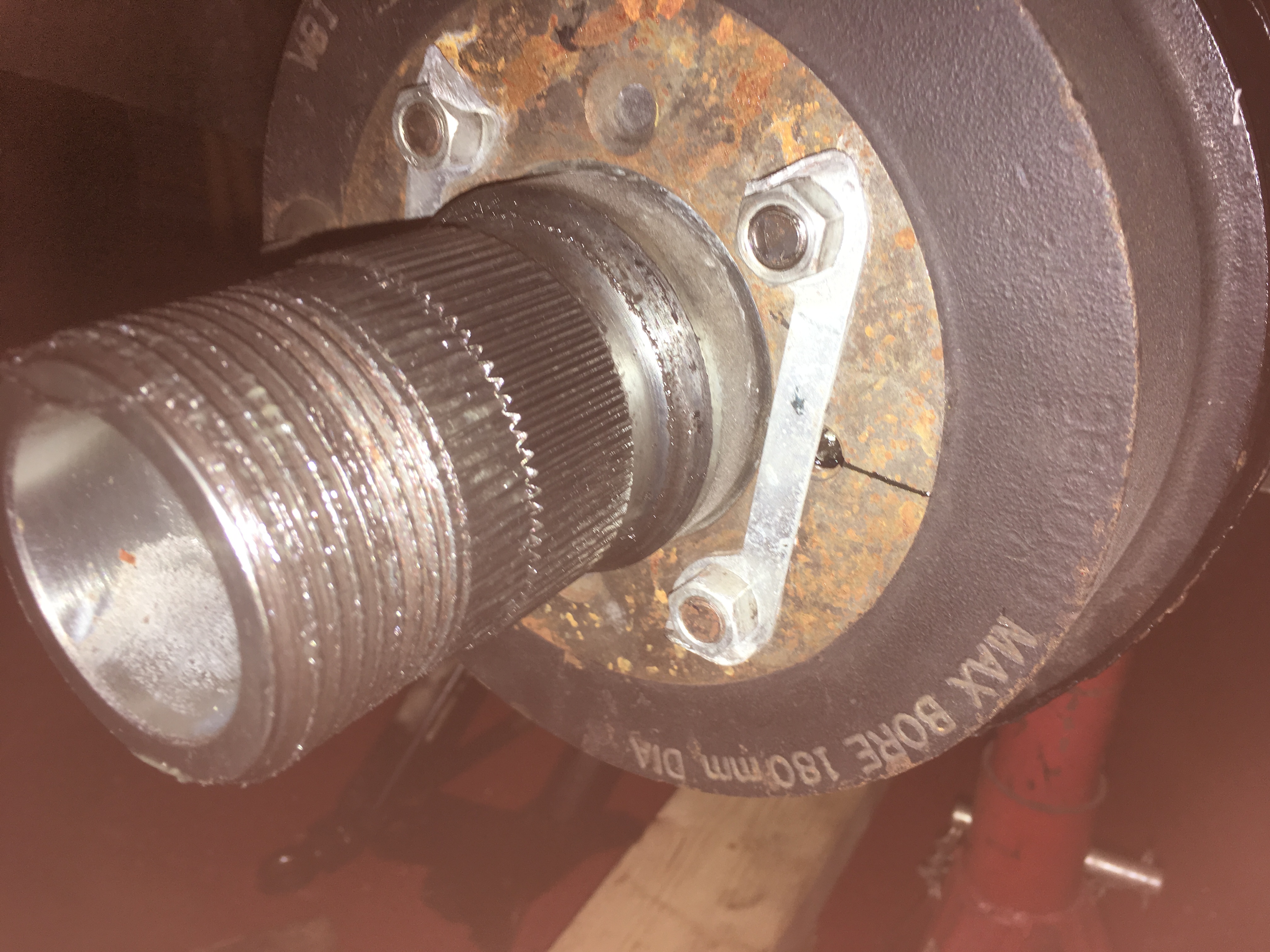 Just for info Splat, I had an original wire wheel axle at the rear and standard midget brakes at the front. With this set-up, the only modification required was having a section of the front brake calliper machined down to allow clearances for the rim of the splined hubs. I'll try and get a photo of this alteration to the calliper. Jan has also picked up on this required mod in a couple of other threads and I took his lead on this and have had no problems. Best of luck in sorting your set up - if all else fails you at least know that the wheels will fit with a wire wheel axle and standard front calipers...