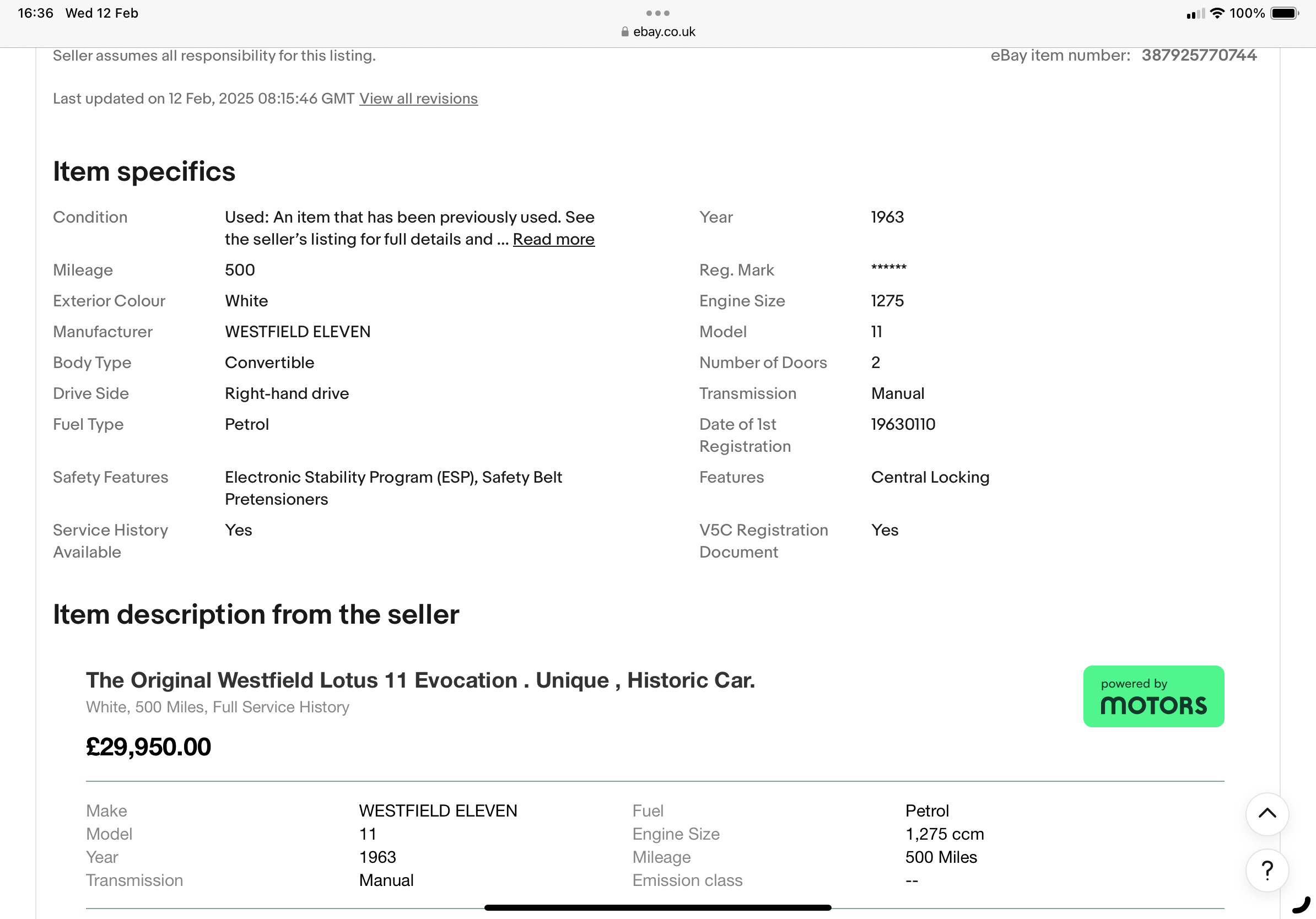 Is thirty grand a bit bullish? Maybe. Certainly, I felt that my own car, pretty meticulously restored by myself with ALL of the tasty mechanical improvements and a few carefully executed cosmetic ones too, was worth somewhere in the high twenties five years ago. But the market has softened somewhat since. Still, it IS an historic vehicle. But…….