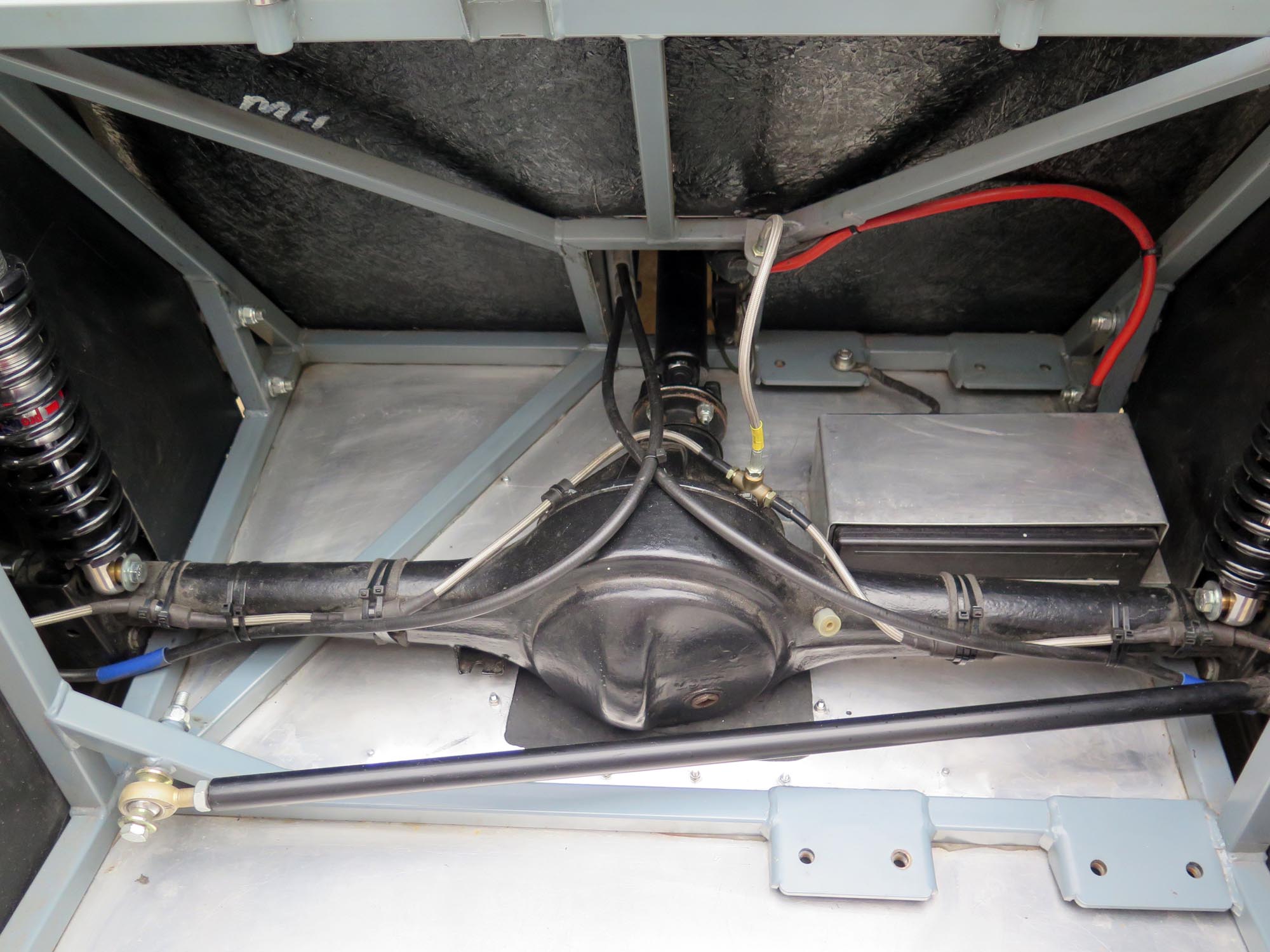 Nice hole in the floor. I don't bother to seal that off, as I have a pressure washer to clean the chassis when I wash the thing, or I vacuum it out. I dont have rear wheel housings, either. It gets dirty, but it is easy to work on.