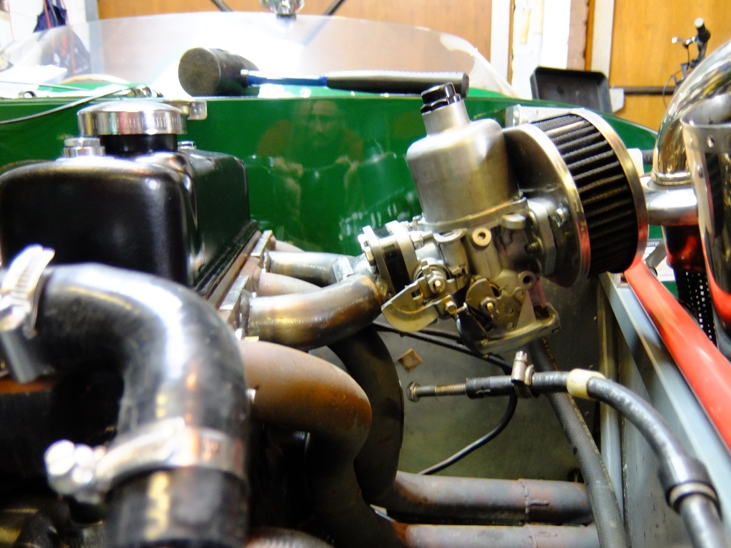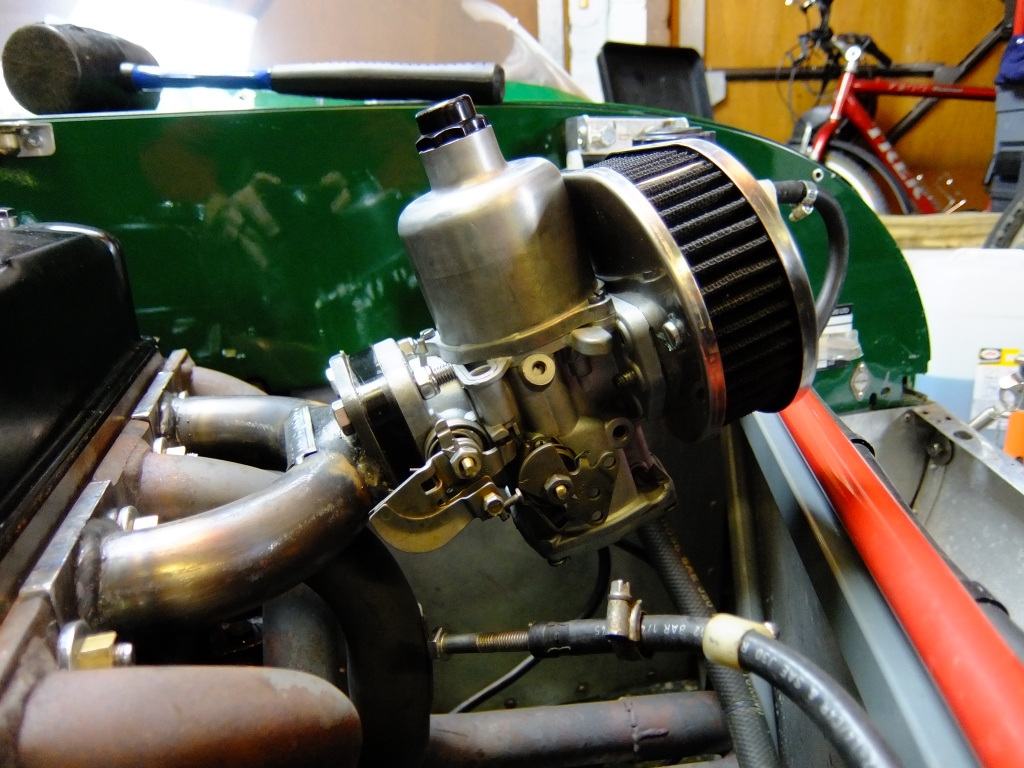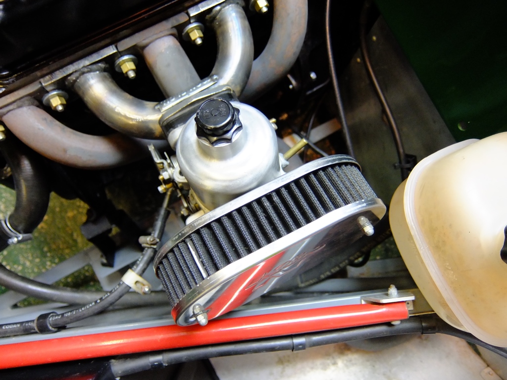 Issues identified are that while there is room for the K&N inside the chassis rails, once the carb is swung more horizontal, there is less clearance from the exhaust manifold. Not sure if there is even enough room there to add exhaust wrap at the moment!!