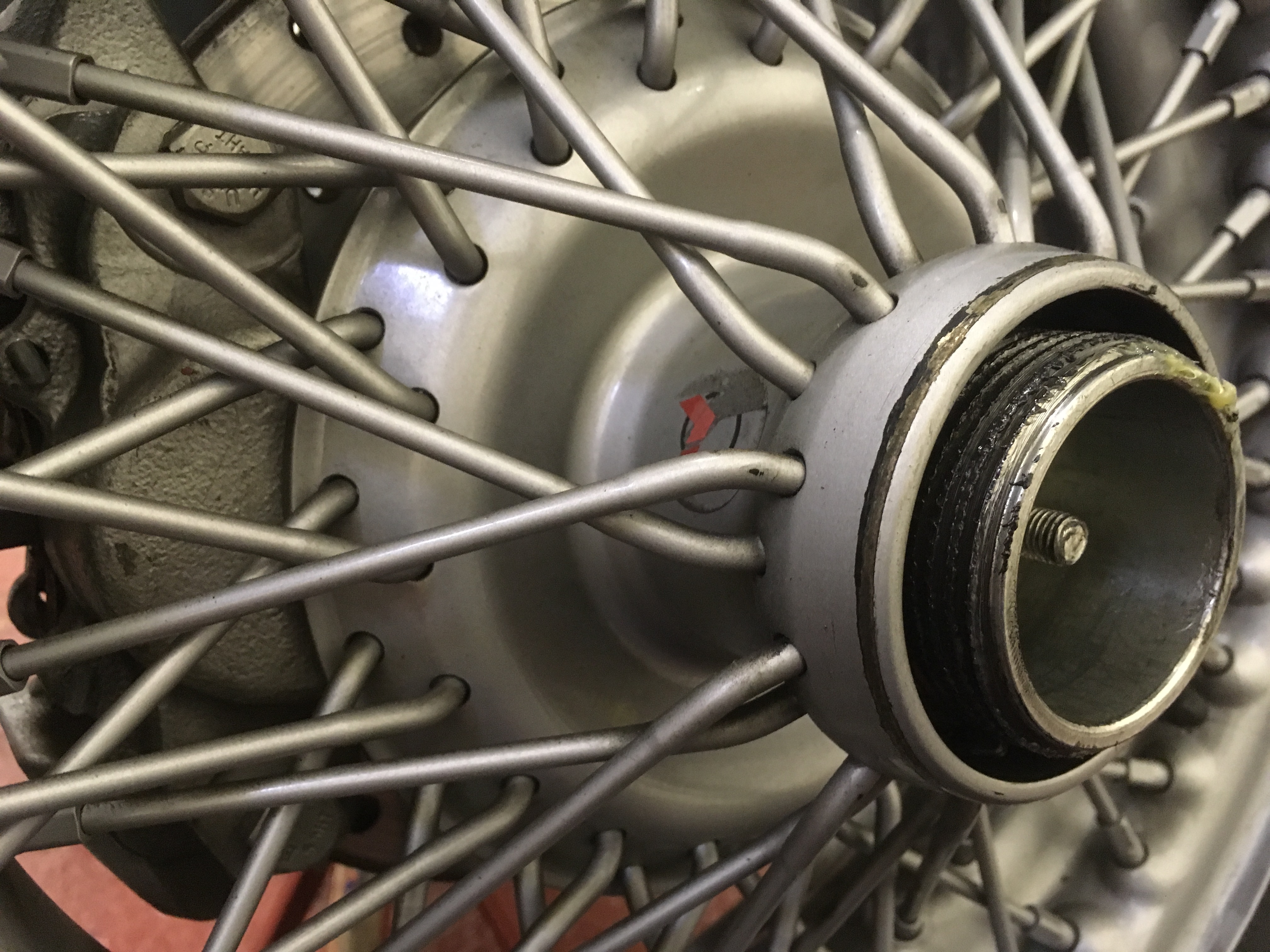 At the front, the back of the Whub hits the brake calliper before the wheel is fully seated on the Shub. And again, none of the thread of the Shub protrudes through the Whub.