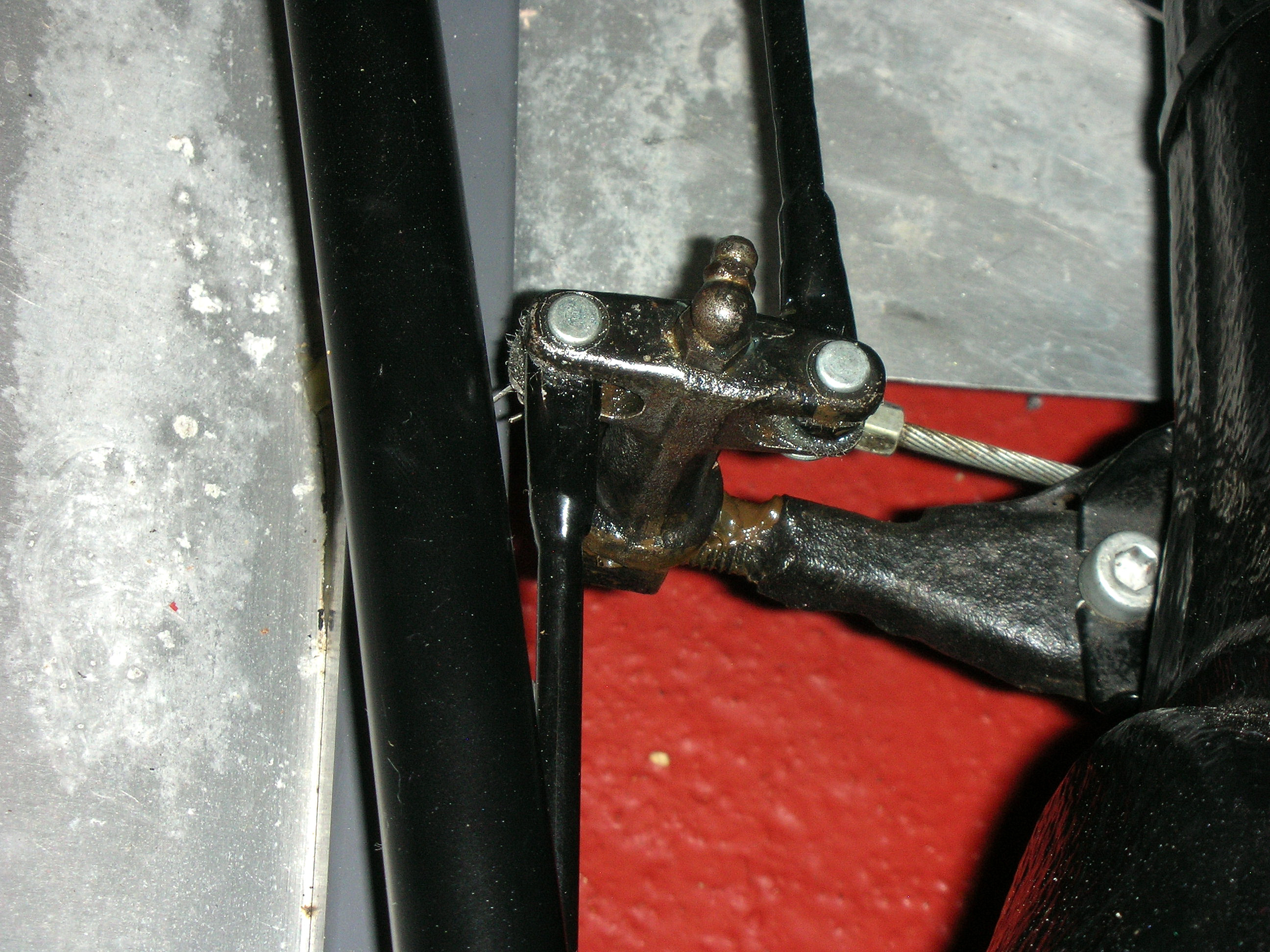 As built, the car had the short-travel rear end with the handbrake bar (bar) running above the Panhard rod (rod). The bar was slightly bent to clear. There were no interference issues and the handbrake worked well without the cylinder levers having to be re-drilled.