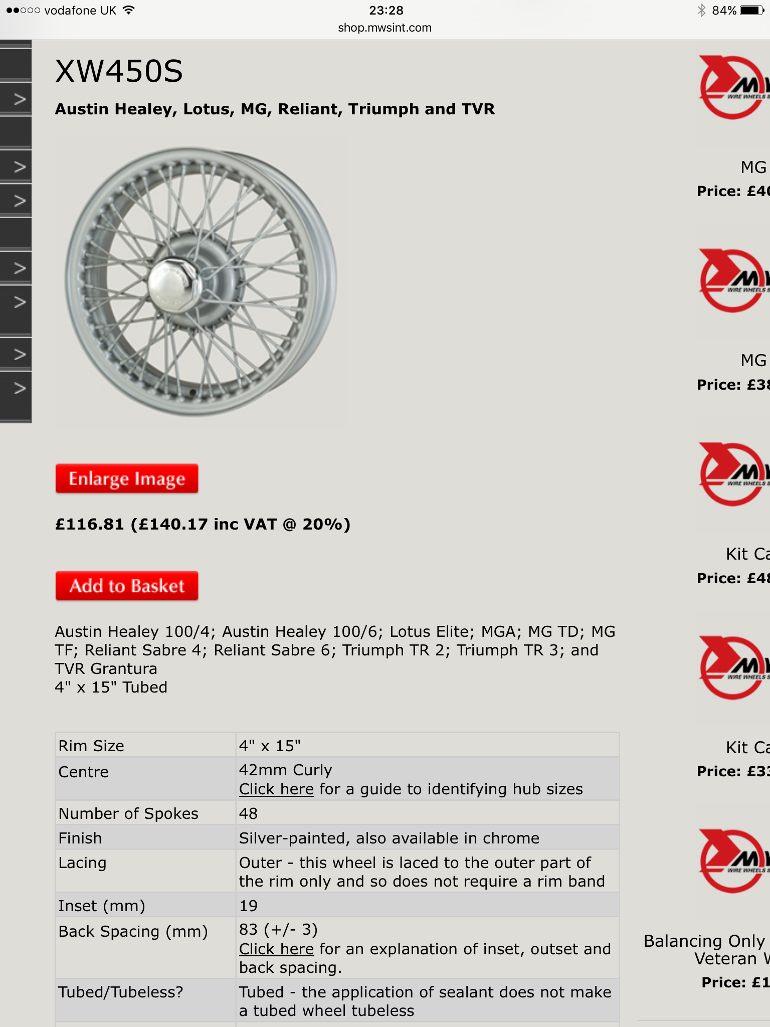 The wobblies were too early for the Eleven, although many were retro-fitted with them. Sports models were fitted with the 4" wide, 48-spoke wires that were standard on the contemporary MG TF and MGA. This still seems to be the wheel of choice for the more original cars.