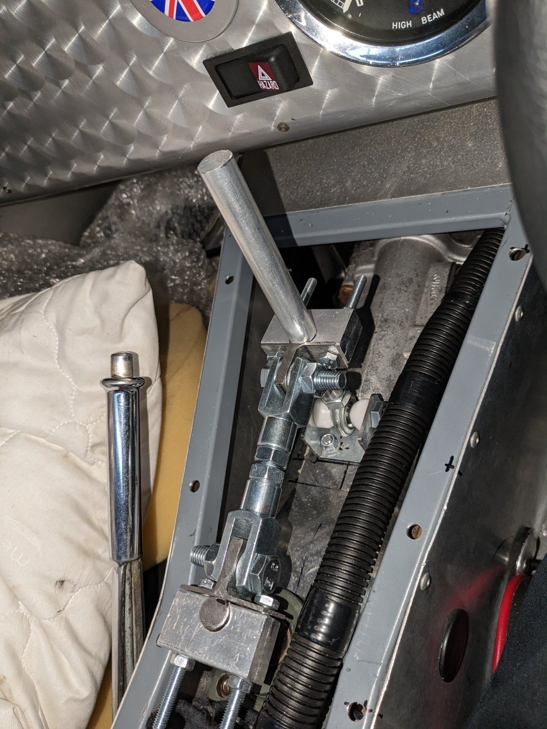 I have since cut down the large diameter aluminium remote gear stick and replaced it with a 8 mm stainless rod and aluminium ball for that more authentic look!