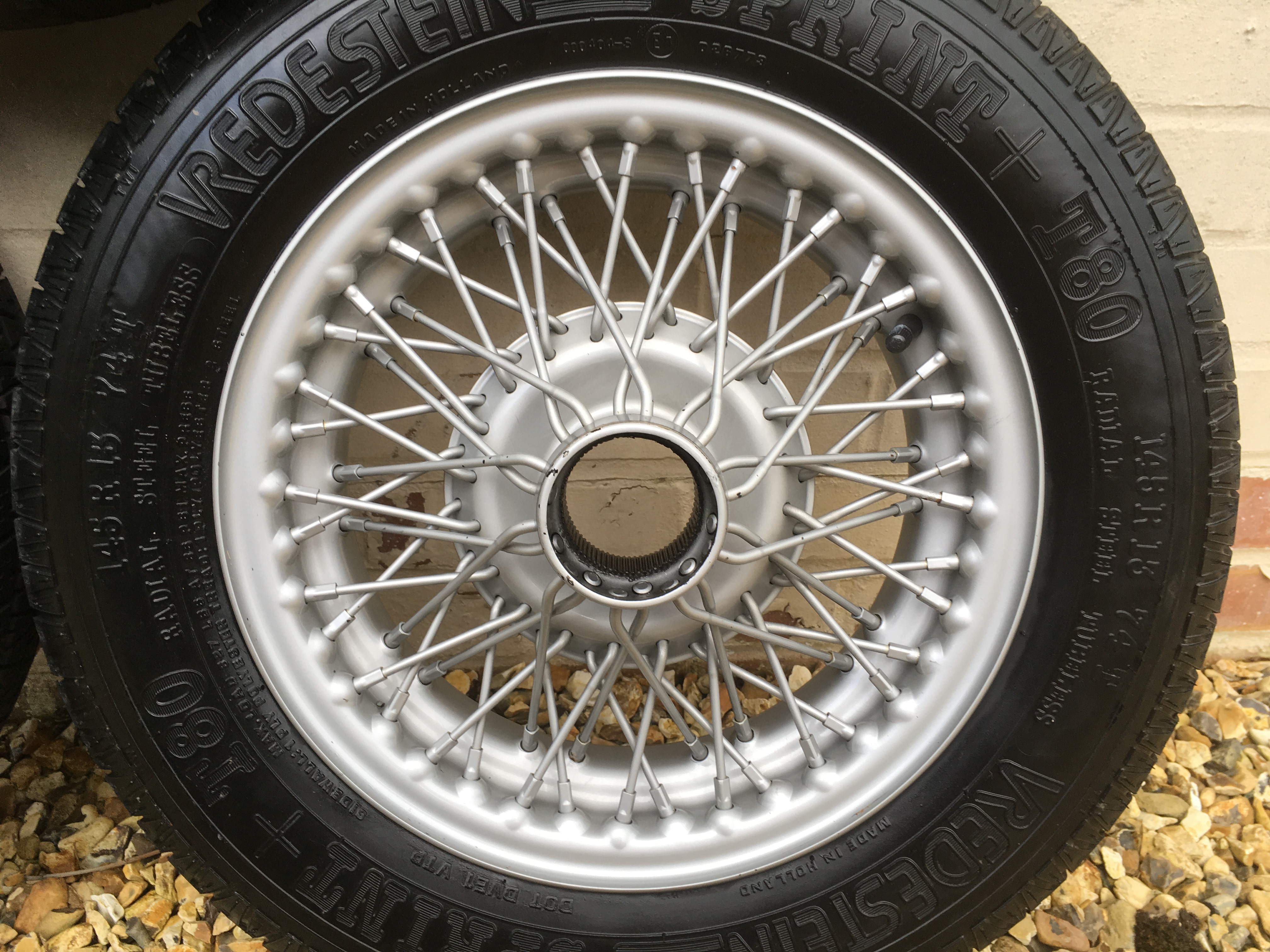 Would you be interested in a set of very good 13J4 wires with very good Vredestien tyres. They've all done about 3300 miles total from new and one spoke has a tiny amount of surface rust. You can have them for beer money, they're only going to sit in the garage rafters otherwise......