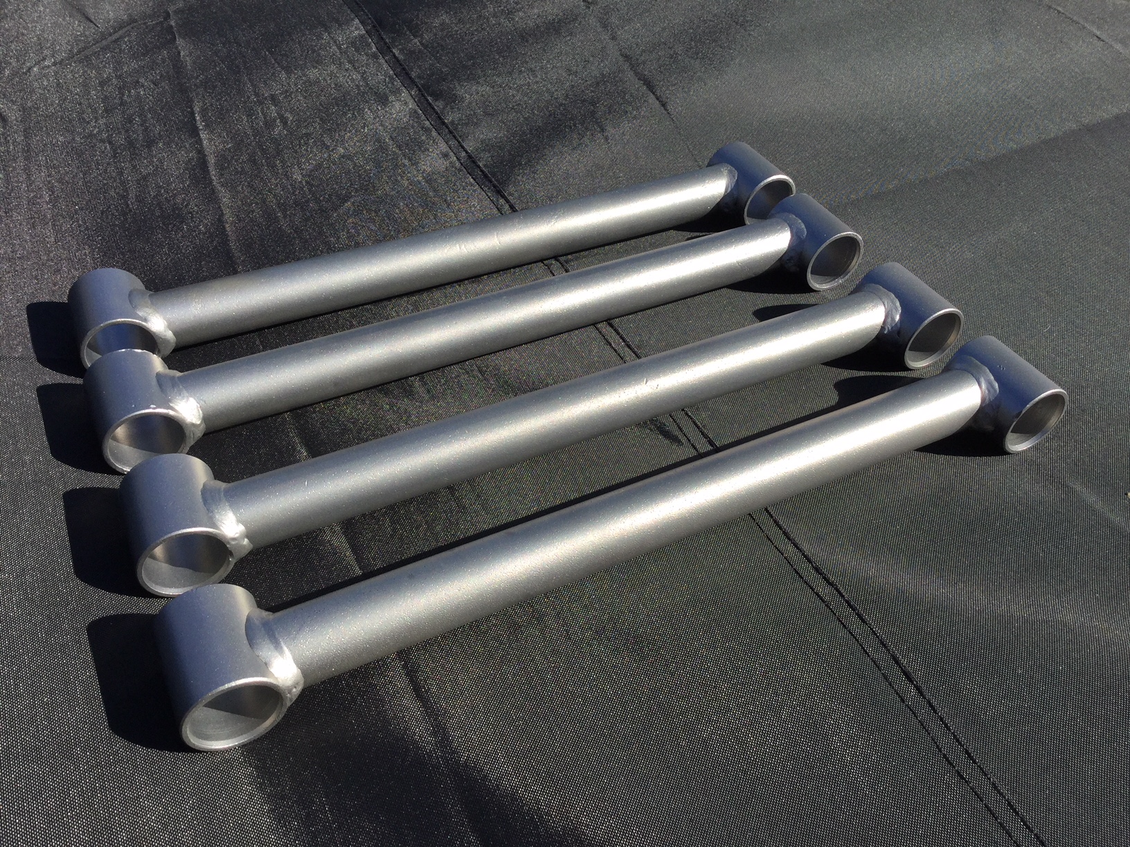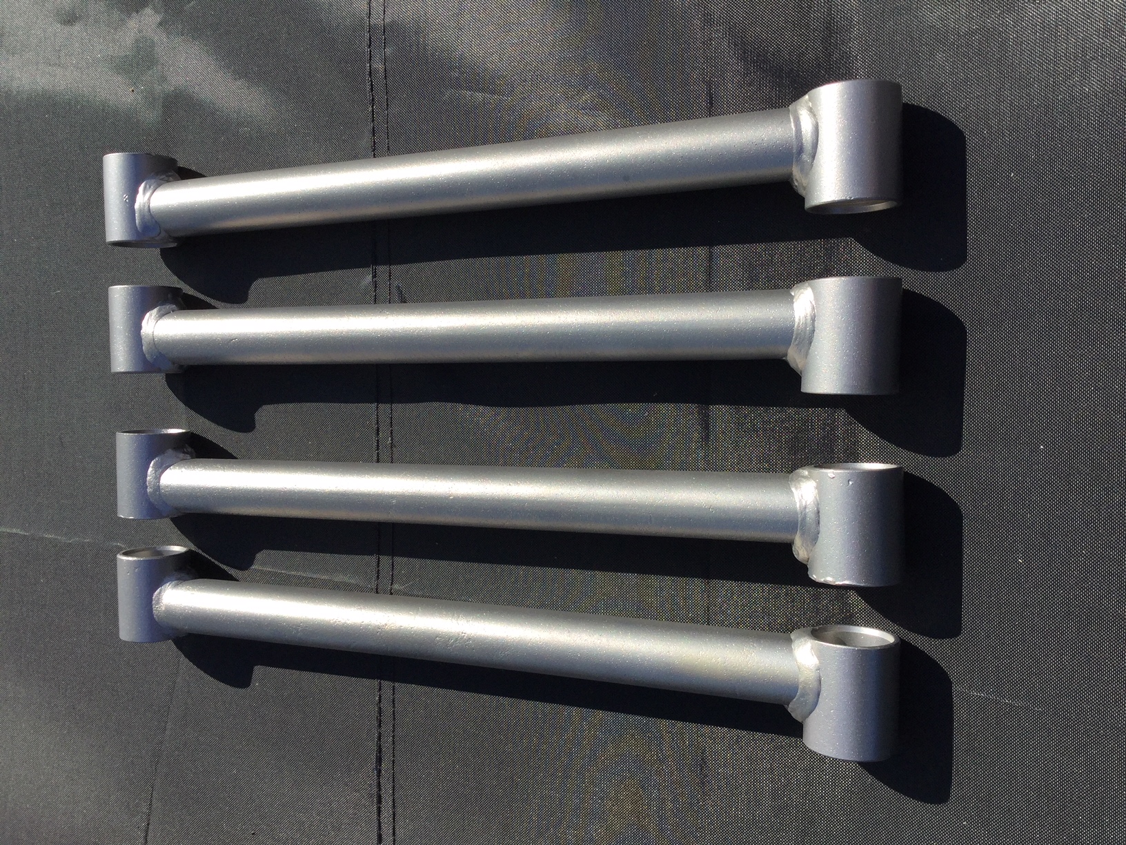 Anyway, yesterday I painted two coats on my vapour-blasted trailing arms. I pickled them in a phosphoric solution prior to painting, but I think that the surface would work perfectly as was. Just an acetone or alcohol rub down would do, I suspect.