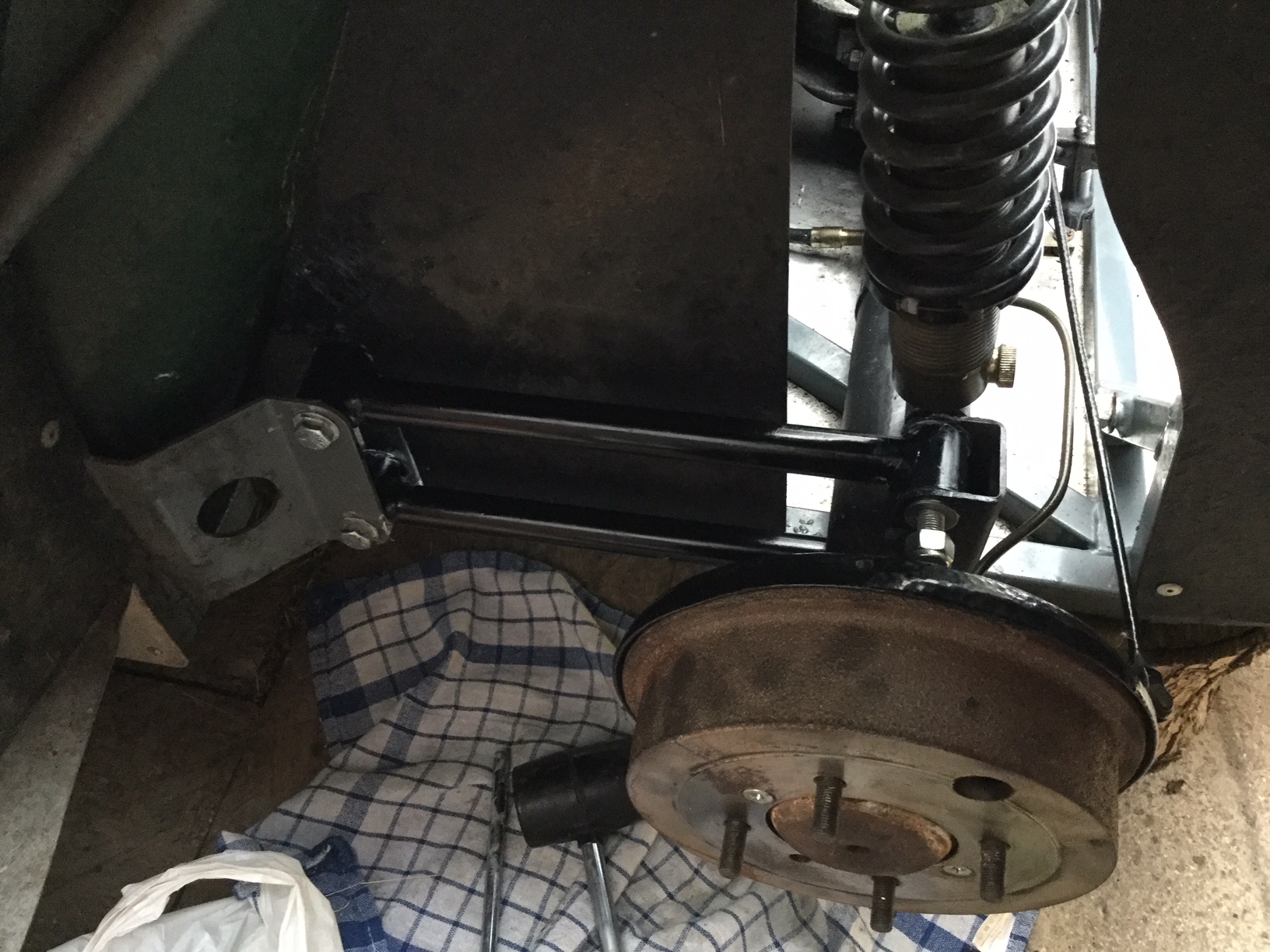With the wheels back on, the chassis settled perfectly when the jack was removed. No binding or untoward noises. A quick run up and down the drive was promising, with the car feeling taut. I have SORNed for the Winter now, but am looking forward to trying this lot out in the Spring.