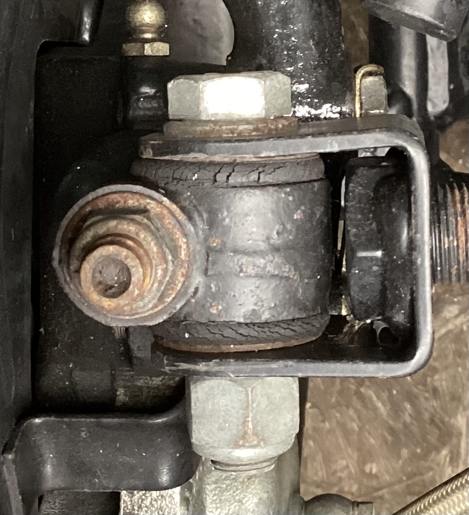 The upper mount will distort somewhat if overtightened. The tube inside the bushing should just contact the inside of the mount when tightened. I like to run the pivot point bolts a bit looser than recommended, to keep the suspension supple. I am also using urethane top bushings as well. These last longer, and don't crack. If you run the 5~10 lb.ft. I recommend, check the free movement of the suspension and the tightness of the bolts on a regular basis. I have not found any problems in the decade or so that I have been doing this, but it is always a good idea to check. You can also drill your suspension bolts and cotter pin a castle nut in place. I have not done this yet, but I did do this to another car with success using Aircraft AN fasteners.
