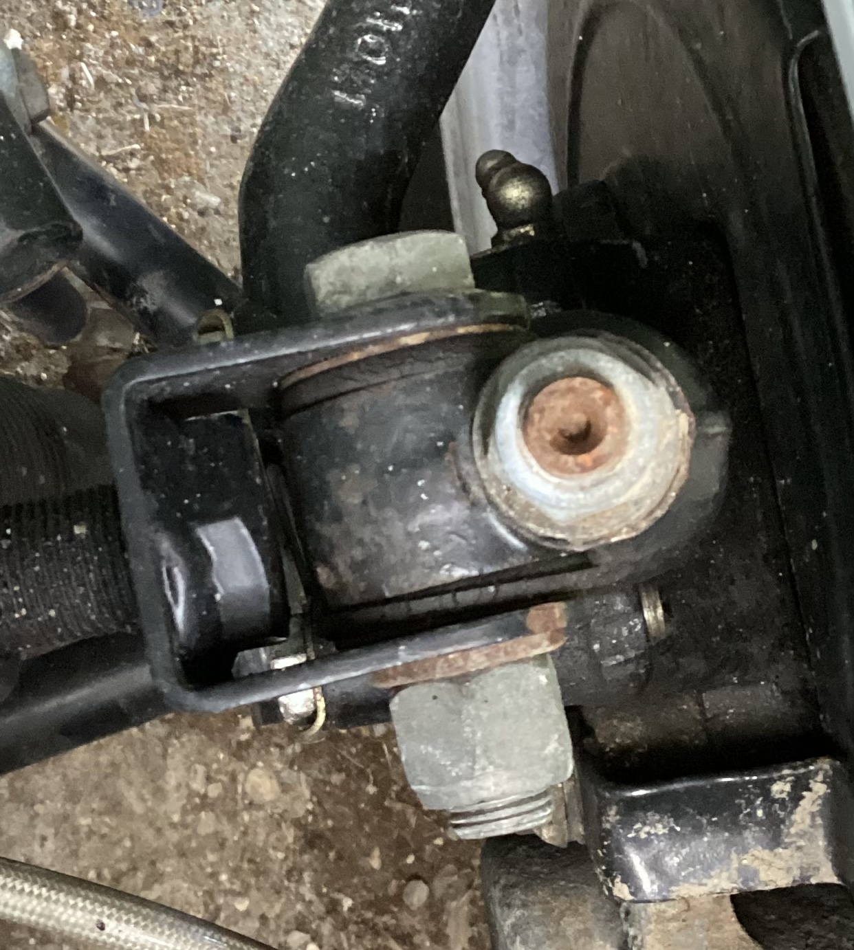 He's driven his car 60 odd miles resulting in both top trunnion suspension brackets bending forwards!