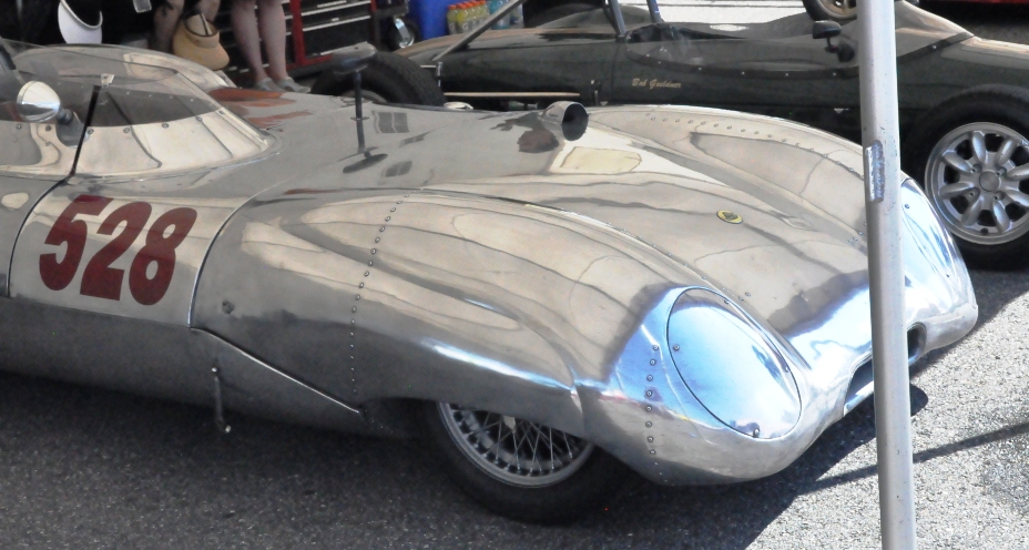 There were quite a few real Elevens racing, and I've added some pictures of some interesting bits (no full shots as the web is full of great Eleven racing pics). I was primarily interested in roll bars, rear fairings, and underhood air management. As my W11 has the non-LeMans rear shell, I'm happy to see that all the Elevens that were racing at Lime Rock had add-on rear humps. I think I'll go with the Dzus method of attachment as shown on the silver car. I also included a picture of a lovely old Lotus 9, as this was the grandfather of the Eleven. It's clearly been thru a lot over the past 60 years, but still soldiers on at the races!