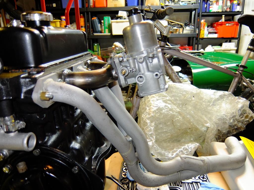 The trick will be achieving the downward angle without interfering with the exhaust manifold, or vapourising the fuel in the float bowl!