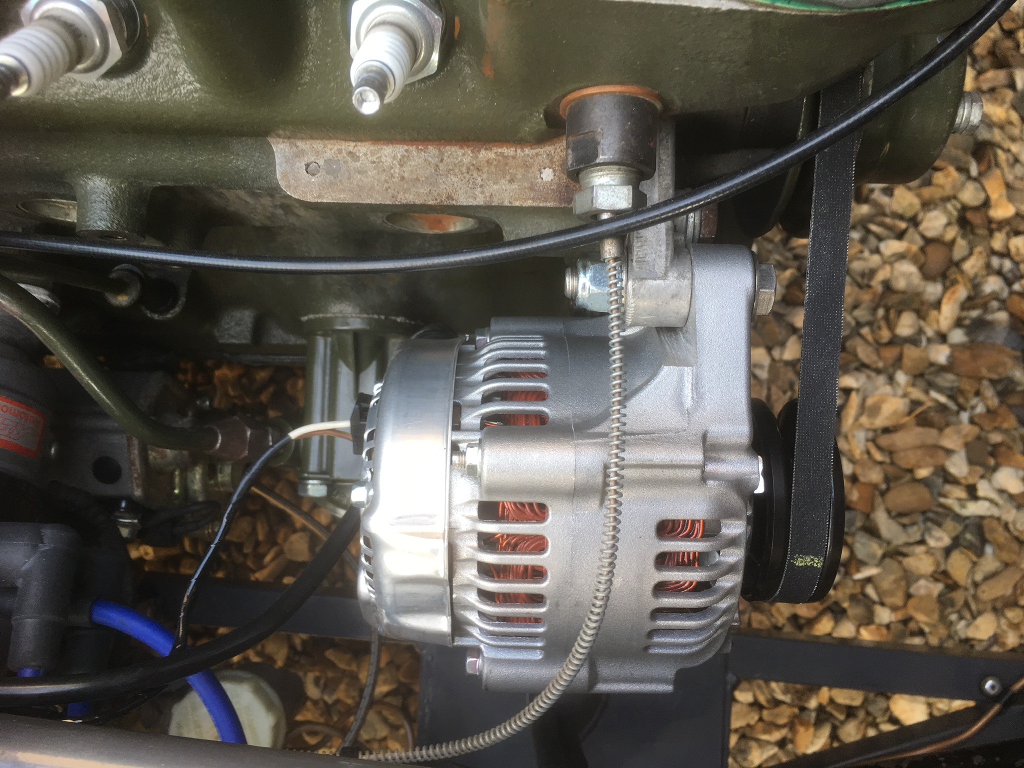 So now we come to wiring the alternator in. Firstly, a quick recap of how the Lucas unit is installed.