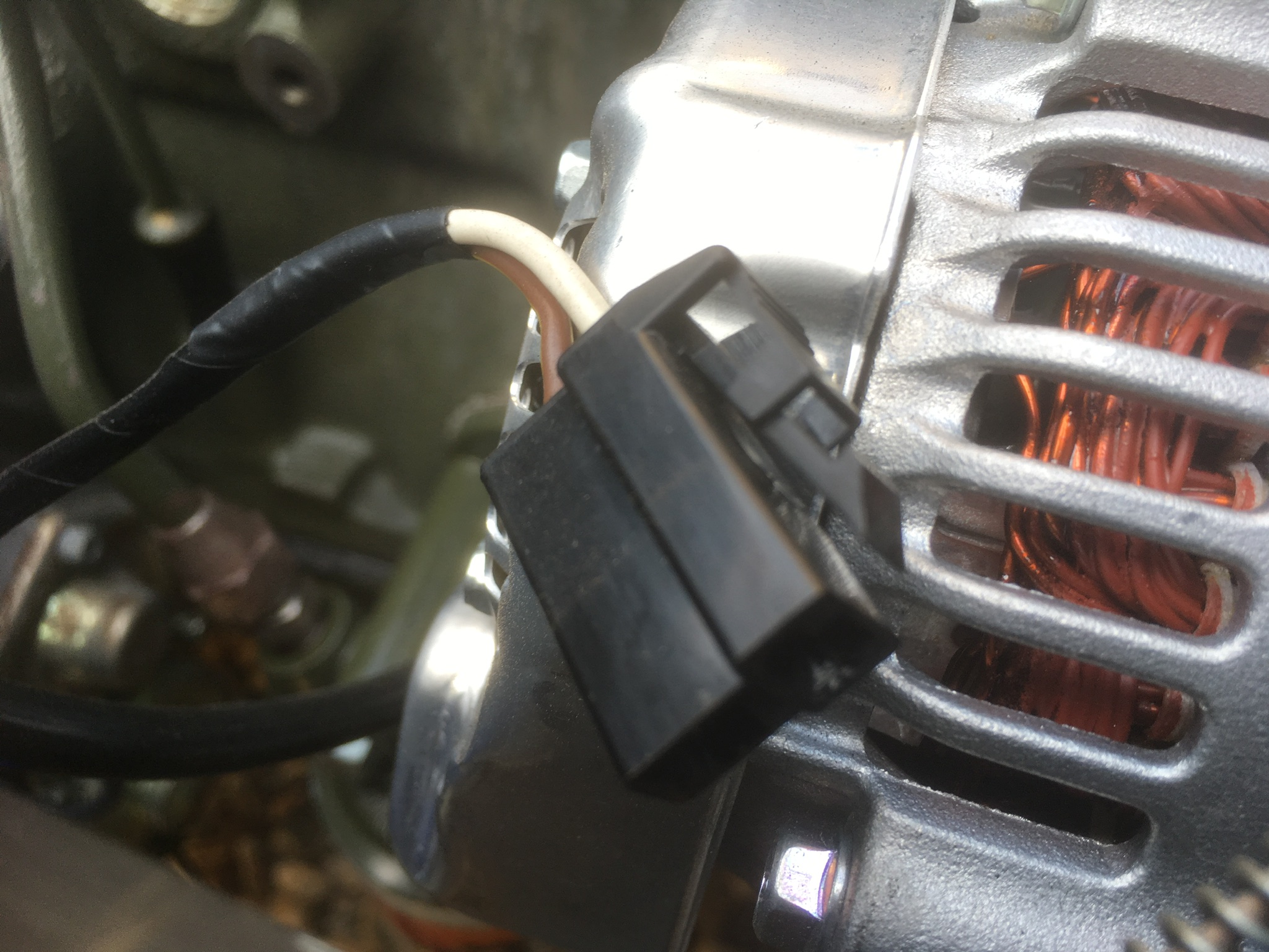 The Denso unit uses a switched-live wire. If you connect up one of the brown wires from the starter solenoid, the alternator immediately becomes excited, drawing a current and becoming warm to the touch. This occurs with the ignition off and will drain the battery.