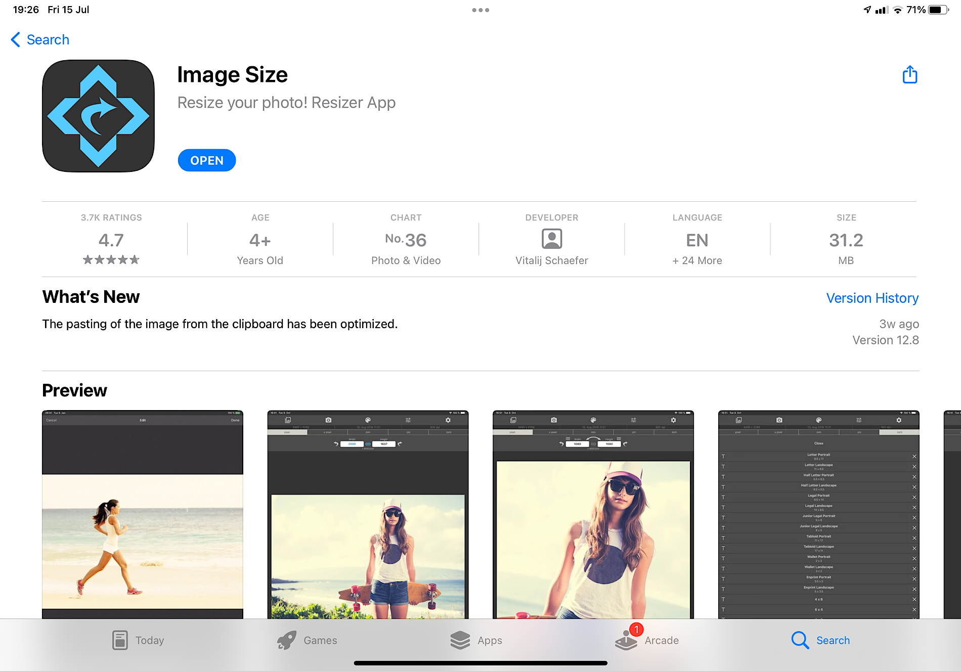 And every camera since your 1990’s potato-phone takes images of far larger than that. So you need to resize your photo to under 1MB. This is pretty easy to do, using a free App. I downloaded “Image Size” from the Apple App Store: