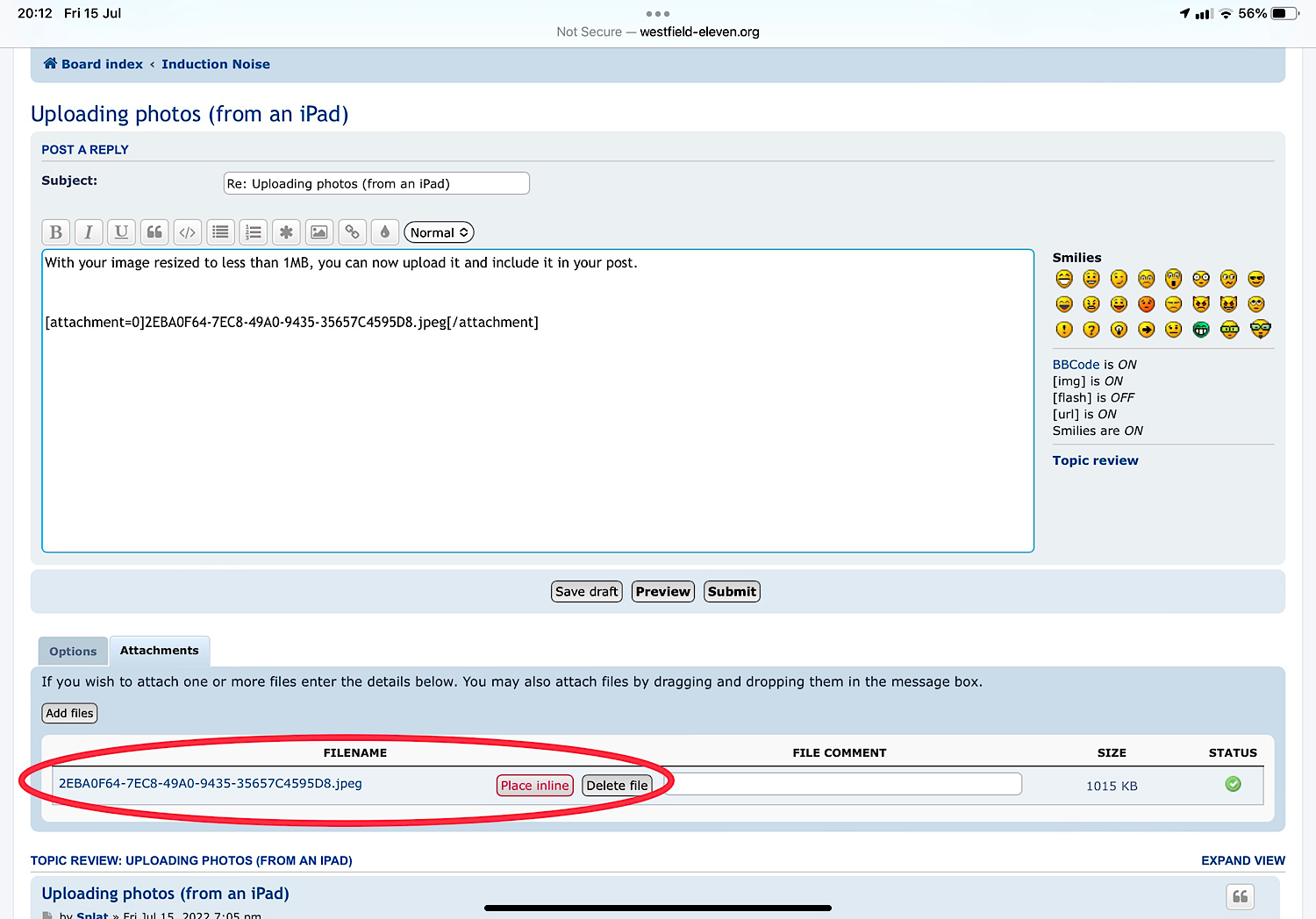 Here’s how I do it (other methods are available). And as ever, the photos in the thread are only actually (quite large) thumbnails of the actual uploads. Clicking/tapping on the thumbnail will open the photo full res, in a new window. Useful if you actually want to read what’s in the circled portions below!