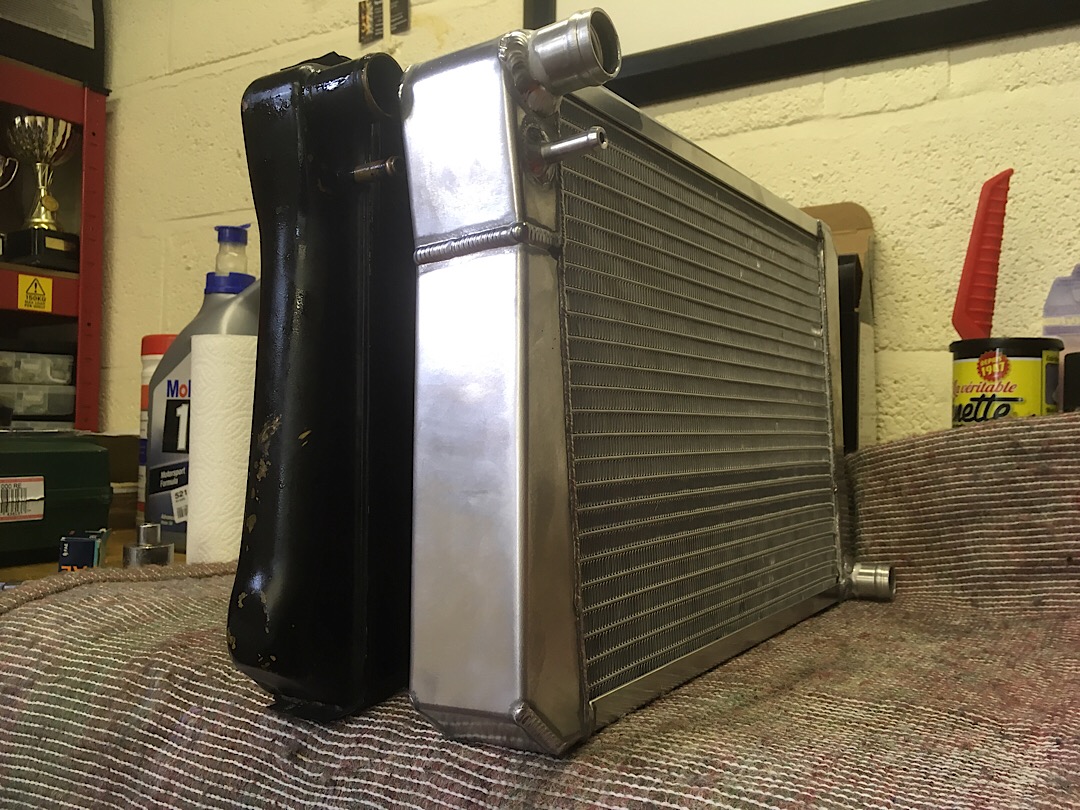 It was a bit smaller than the original Spridget rad, which made packaging easier as it could stand nearly straight up. It was as wide as the front frame element.